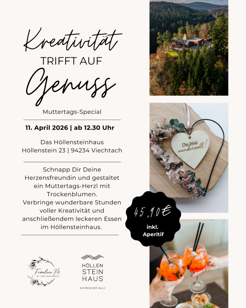 Solltest du kurzfristig nicht am Workshop teilnehmen können, erhältst Du eine DIY-Box und einen 10 € Wertgutschein vom Höllensteinhaus.