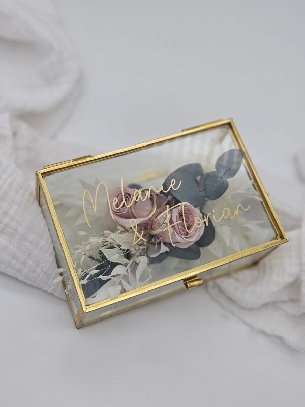 Die Box wird individuell mit Euren Vornamen personalisiert – so wird sie zu einem einzigartigen Schmuckstück, das den Zauber Eures Hochzeitstages für immer bewahrt.